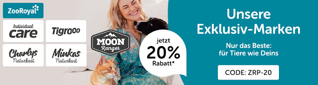 Jetzt 20% Rabatt beim Kauf von Produkten der ZooRoyal Exklusiv Marken sichern. Im Warenkorb den Gutscheincode ZRP-20 hinterlegen.