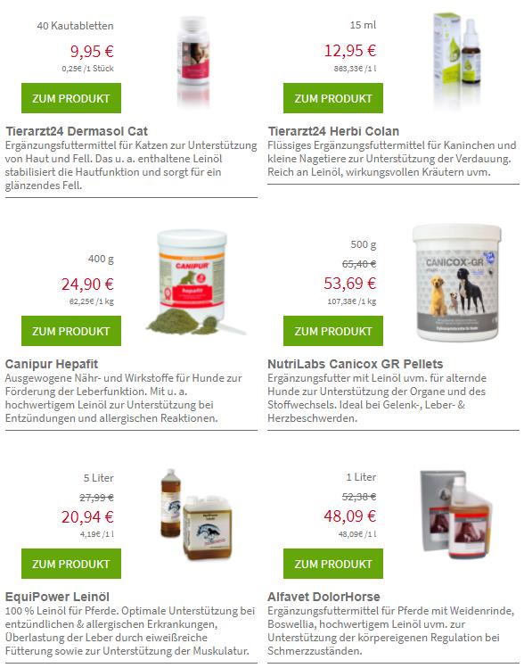 Füttern Sie Ihrem Tier bereits Leinöl? Untenstehend finden Sie ausgewählte Produktempfehlungen für Hunde, Katzen, Pferde und Kleintiere.