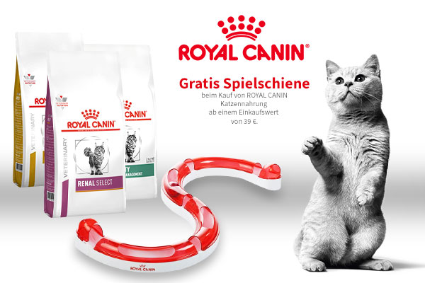 Der Gutschein für die Royal Canin Spielschiene gilt nur solange der Vorrat reicht und bezieht sich auf ROYAL CANIN Katzennahrung ab einem Einkaufswert von 39 €.