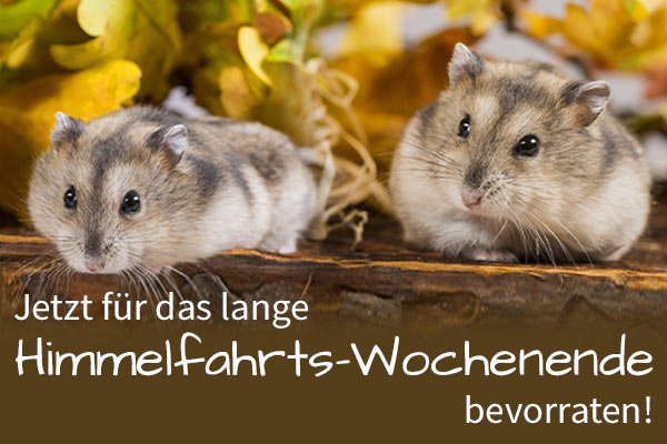 Das lange Himmelfahrts-Wochenende rückt näher und wir empfehlen Ihnen, sich für die kommende Zeit rechtzeitig mit Futter für Ihre Lieblinge einzudecken.
